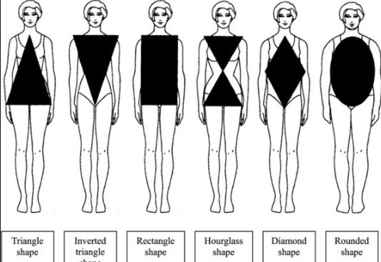 A figure that is broad on the shoulders and narrower at the hips. Since the waist area should not be emphasized, wearing v-necks or A-line dresses would add length and hide the waist area. Skirts that fit a bit below the naval will minimize the waist and highlight your legs.